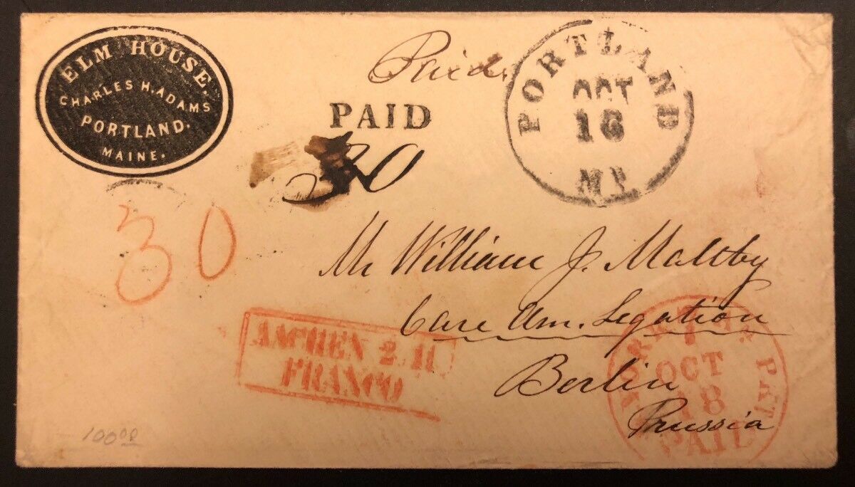 TangStamps US Stampless Cover Portland To Berlin Germany, New York France Cancel